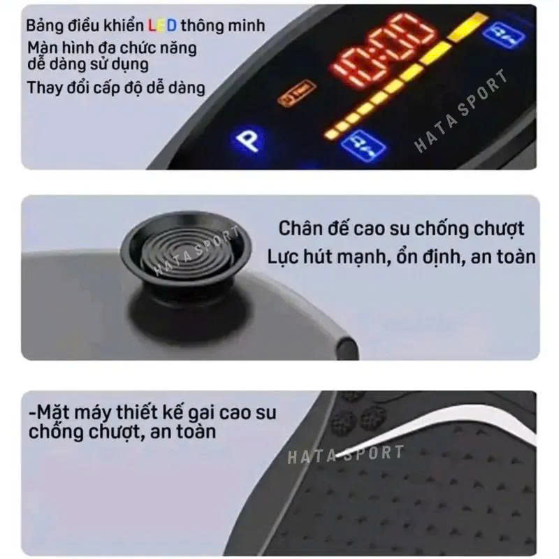 - Tính năng: Hiển thị tốc độ rung, thời gian tập, loa phát nhạc, kết nối bluetooth