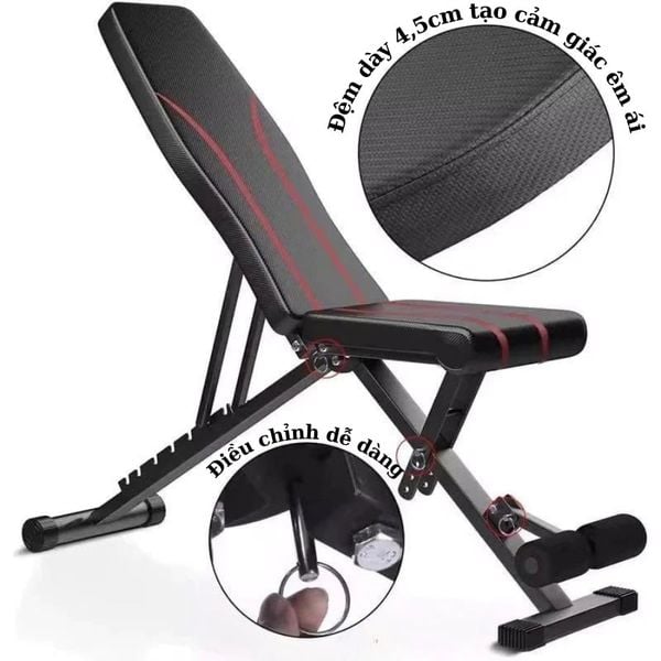 Bên cạnh đó, ghế được thiết kế với nhiều góc điều chỉnh linh hoạt, phù hợp cho mọi bài tập: