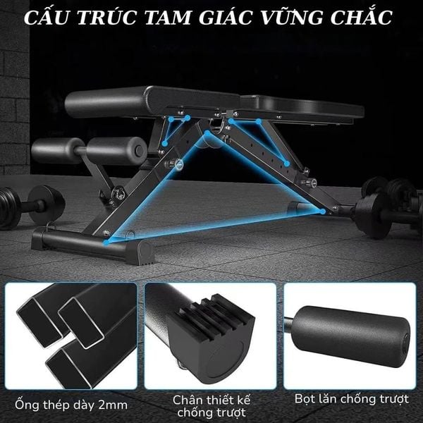 - Tập bụng: Ghế điều chỉnh góc nghiêng giúp bạn tập gập bụng, plank, nâng chân… hỗ trợ giảm mỡ bụng nhanh chóng.